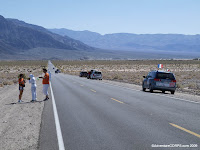 Me pasaba el otro día por el blog de Sergio Fernández (http://ser13gio.blogspot.com/), que leo de manera habitual y encontré una crónica de la Badwater Ultramarathon 2009, una carrera que se disputa en el Death Valley cada mes de julio... , ahí, con la fresca. La carrera se disputa sobre la distancia de 131 millas, unos 210 kms. En la crónica de Sergio, cuyo enlace pongo aquí, para el que lo quiera ver, no he podido evitar recordar nuestro viaje de luna de miel del año pasado y de pensar en el calor que han tenido que pasar los corredores, ya que nosotros casi nos achicharramos. Este año ha ganado el brasileño Marcos Farinazzo y ha tardado casi 24 horas en acabar las 131 millas del recorrido. Pongo algunas fotos de la organización (izquierda) comparadas con algunas que sacamos (derecha) hace, el próximo mes de agosto, un año. El próximo mes de Octubre estarán por allí mi hermana Caty y Valentín. A ver si mi cuñado toma buena nota del recorrido para volver dentro de un par de años a correr... .